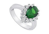 Frosted Emerald and Cubic Zirconia Ring : 10K White Gold - 2.50 CT TGW Size 5