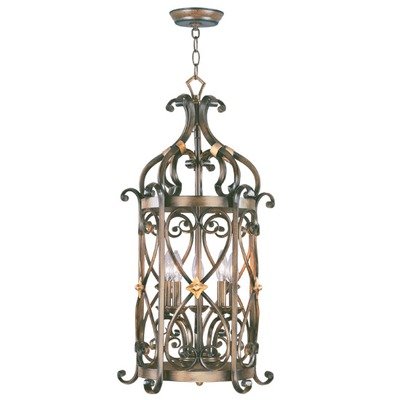 FeaturesFinish: Windsor Walnut Glass / Shade:16"Dia x 30"H5 60w CandCanopy: 5" DiaChain: 3' Livex 6227-62 Wellington Foyer Light Windsor Walnut?