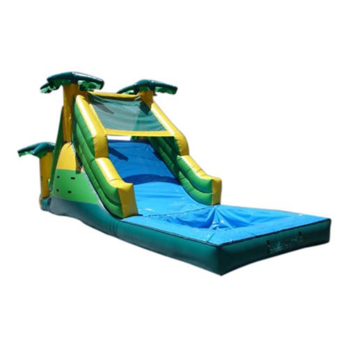 Kidwise Commercial Tropical Inflatable Water Slide Set up the Tropical Inflatable Water Slide for the ultimate island getaway. Just add water to turn this slide into a fun waterfall in paradise. The slide is crafted of 18-ounce reinforced vinyl material for durability and can hold up to three players at a maximum weight of 300 pounds. This inflatable slide includes a carry bag, stakes, patch kit, instructions, blower, hose assembly, and warranty. Folded up or inflated, the entire product weighs 330 pounds, making it safe for commercial or home use. Also includes one-year warranty on material defects and workmanship. Information About Delivery We are pleased to offer LTL delivery on this item that includes tailgate service. Tailgate service means that the item is lifted off the truck and placed at an immediate curbside location such as a driveway or parking lot. Our LTL delivery service will call to pre-arrange a delivery time. Please note that the item is very heavy. We suggest you make separate arrangements for help moving the item to its final location. If you would like additional help with the item from the LTL delivery service, you may make separate arrangements when confirming the delivery time. Additional help moving the item will require separate, additional fees payable to the LTL carrier. A lead-free product: a note from Kidwise Recent concerns regarding inflatable bounce products with illegal lead concentrations have lead to allegations against producers and distributors of these products by the state of California. Naturally, this serious matter is of concern to us and to our customers. Kidwise products are not included in these allegations. Our materials are tested at intervals throughout the year and after production runs. We have always tested for lead content in materials to verify our products are safe for kids. We also use
