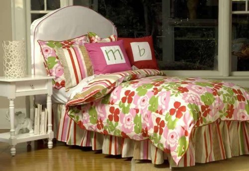 #The four piece full or queen bedding set includes a duvet, bed skirt and two standard shams. The three piece twin set includes includes a duvet, bed skirt and a standard sham.Fabrics are cotton and machine washable.Additional Information: Maddie Boo Bedding is bedding custom and hand made here in the United States. The fabric Maddie Boo uses is of top quality, guaranteeing a perfect, and comfortable bedding set every time. Because Maddie Boo Bedding is made to order, please allow 4-6 weeks for delivery. Red, White, Pink. With Cotton fabric.