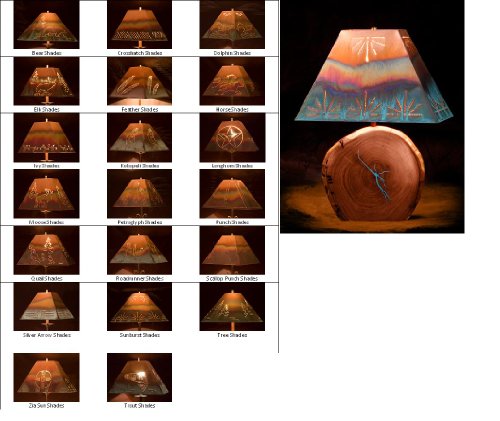 FeaturesEach Lamp also comes with a rectangle shade free of charge!3 shade finishes - 20 shade patternsShips from artisan in about 3 weeksEach piece is free formed "Velvet" Mesquite harvested from the Sonora DesertTurquoise is inlaid in the naturally developed cracks of the wood. Mesquite Lamp with Copper Shade 27" total Height with Crosshatch Rectangle Sh...?