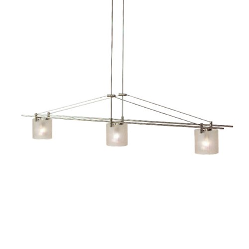 #Collection: Baybridge, Width/Diameter: 39", Height: 49", Length: 39", Lamp: 3-50w bulb(s), - Desc: the cornerstone of any residence, hotel, restaurant, bar or commercial application. Low-voltage, three-light chandelier. Field-cuttable stem adjusts height from 35" to 49" Fixture is 39" in length. Each glass is 3.5" in diameter. Frosted Italian glass. 12V. Also available in five-light version. Low-voltage, three-light chandelier. Field-cuttable stem adjusts height from 35" to 49" Fixture is 39" in length. Each glass is 3.5" in diameter. Frosted Italian glass. 12V. Also available in five-light version. Finish options: black, satin nickel Canopy