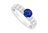 Sapphire and Diamond Engagement Ring : 14K White Gold - 0.50 CT TGW Size 4