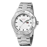 Are you looking for the best review for Gucci Men's YA126232 G-Timeless Dive White Dial Steel Bracelet Watch? Read customer review, features, specifications, description, check prices update and more satisfying for Gucci Men's YA126232 G-Timeless Dive White Dial Steel Bracelet Watch product reviews! The hip Gucci Men's G-Timeless Steel Bracelet White Dial Sport Watch offers a contemporary flair that will get your watch noticed in a crowd. The crisp white dial stands out on your wrist with green geometric hour indexes, green-tipped hour and minute hands, and a silver-toned second hand. The signature textured background makes this an eye-catching statement. A durable stainless steel bezel and case offer superior construction while the antireflective sapphire crystal provides protection from nicks and scratches. The bezel is inscribed with a second's index in intervals of 10 with the 10 and 20 second's index in green for added flair. The stainless steel bracelet is a classic style and is secured with a luxurious deployment clasp, so the watch stays on your wrist whether you're practicing your golf swing or hitting the hottest lounge. The watch is equipped with precise Swiss quartz movement and is water-resistant to 330 feet (100 meters). The G-Timeless Collection