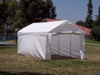 10' X 30' ENCLOSED CANOPY High Peak (120 Degree) Roof Type Width = 10' Length = 30' Side Height = 6'8' Center Height = 9'9" Weight = 195 pounds With 8 Legs Use of Canopy Stakes & Foot Pads are recommanded for windy areas