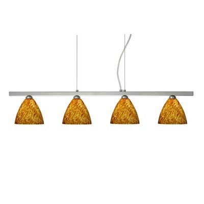 Features Mia Four Light Cable Hung Linear Pendant Finish: Satin Nickel, Glass Shade: Blue Cloud?